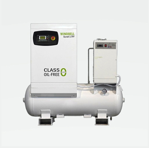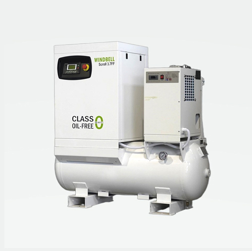The 3 and 1 oil-free scroll air compressors are gas compression devices that form a crescent-shaped compression chamber through the relative motion of the stationary scroll and the moving scroll. They are mainly used in the food, pharmaceutical, electronics, printing, chemical, precision spraying and golf course industries.