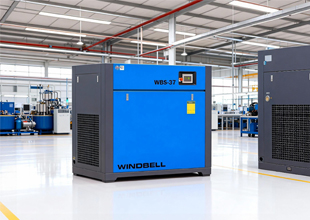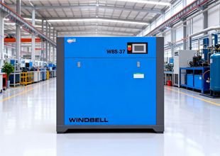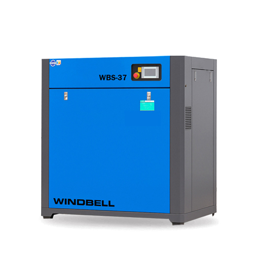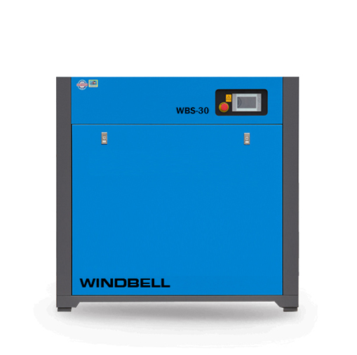 WBS Range ( 30-37kw) compressor is equipped with one high efficiency air end and powered by one IP55 energy saving electrical motor. The cooling system of the screw air compressor is driven by one turbo (centrifugal ) blower which is very high efficiency and silent.