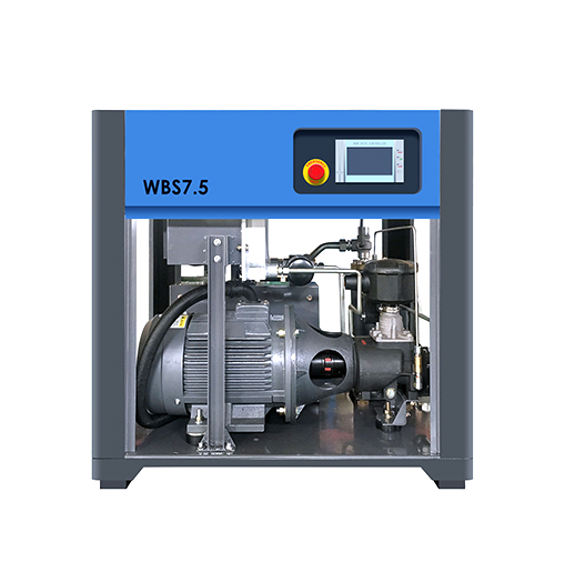 WBS Range ( 7.5-75kw) compressor is our most popular model. It is direct drive, and equiped with turbo blower, IP55 electrical motor and high efficiency screw air end.